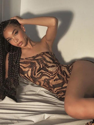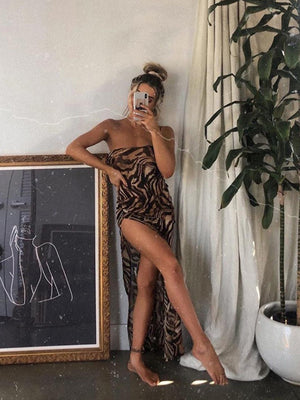 This Khaki One Shoulder Bodycon Sleeveless Animal Maxi Polyester Dress is ideal for any special event. The elegant design and bodycon fit highlight your curves, with the details adding a touch of allure. Crafted from high-quality polyester fabric, this dress is both comfortable and chic.