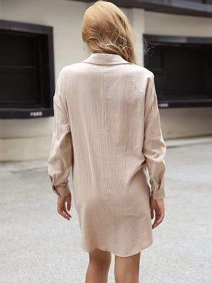 This elegant A-Line dress is made from high-quality khaki polyester, perfect for any occasion. The flattering silhouette and versatile color make it a must-have in any wardrobe. The dress features a classic shirt collar neckline and a comfortable fit that will make you feel confident and stylish.