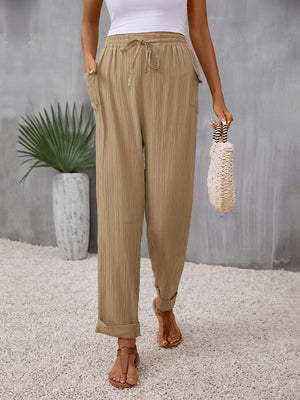 Stay comfortable and stylish in these khaki polyester trousers, perfect for everyday wear.