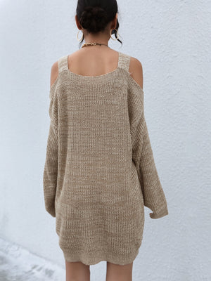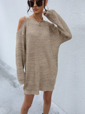 Khaki Round Neck Solid Long Sleeves Polyester Sweater