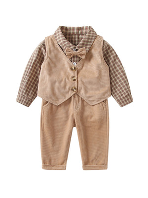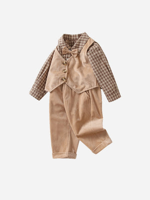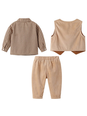 Khaki Shirt Collar Long Sleeves Cotton Blend Top & Trousers Set