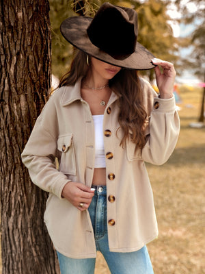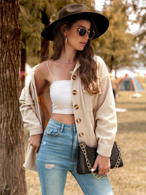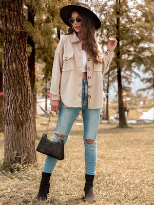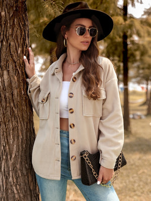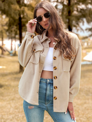 Khaki Shirt Collar Solid Long Sleeves Polyester Top