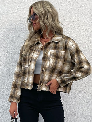 Khaki Shirt-Style Polyester Jacket