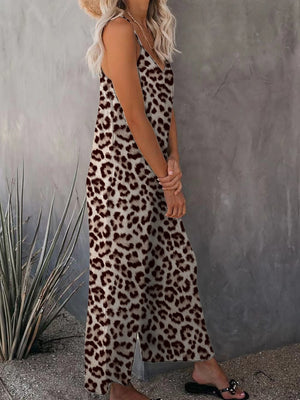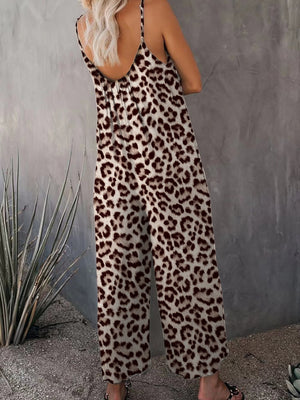 Khaki Shoulder Straps Sleeveless Printed Polyester Jumpsuit