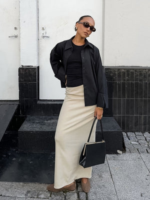 Khaki Solid Maxi Pure Cotton Skirt
