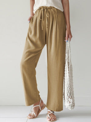 Khaki Solid Regular Fit Casual Polyester Regular Trousers