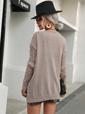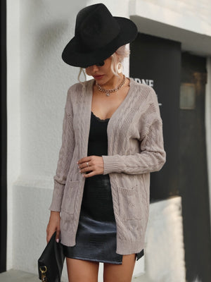 Khaki V-Neck Solid Long Sleeves Polyester Cardigan
