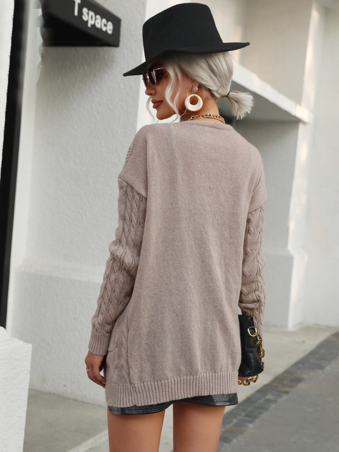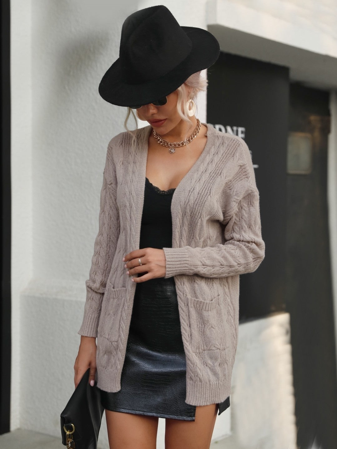 Introducing our Khaki V-Neck Solid Long Sleeves Polyester Cardigan, a stylish and versatile addition to your wardrobe. Made from high-quality polyester fabric, this top offers a comfortable and breathable fit. The v-neck design adds a touch of elegance, while the black color provides a timeless and sophisticated look.