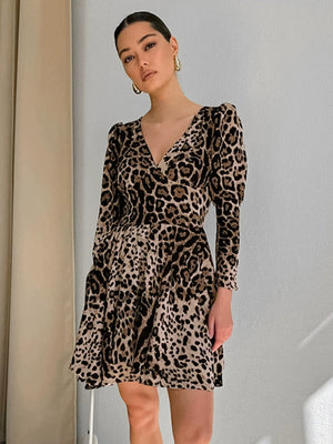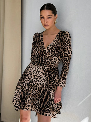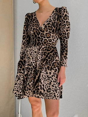 Leopard Print V-Neck Mini Dress