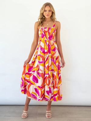 Embrace your feminine side and turn heads with our magenta square neck a-line floral sleeveless maxi polyester dress. Crafted from high-quality polyester, this dress offers a comfortable and lightweight feel, perfect for any occasion.
