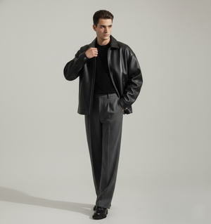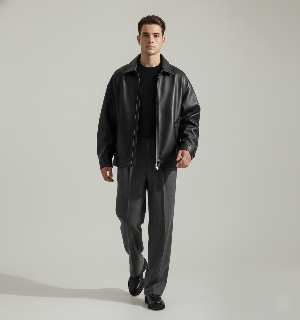 Designed with a classic spread collar, smooth front zip and a slightly relaxed straight fit, it sits perfectly on the shoulders without feeling bulky. The matte black finish keeps it premium and understated, not shiny or cheap.
