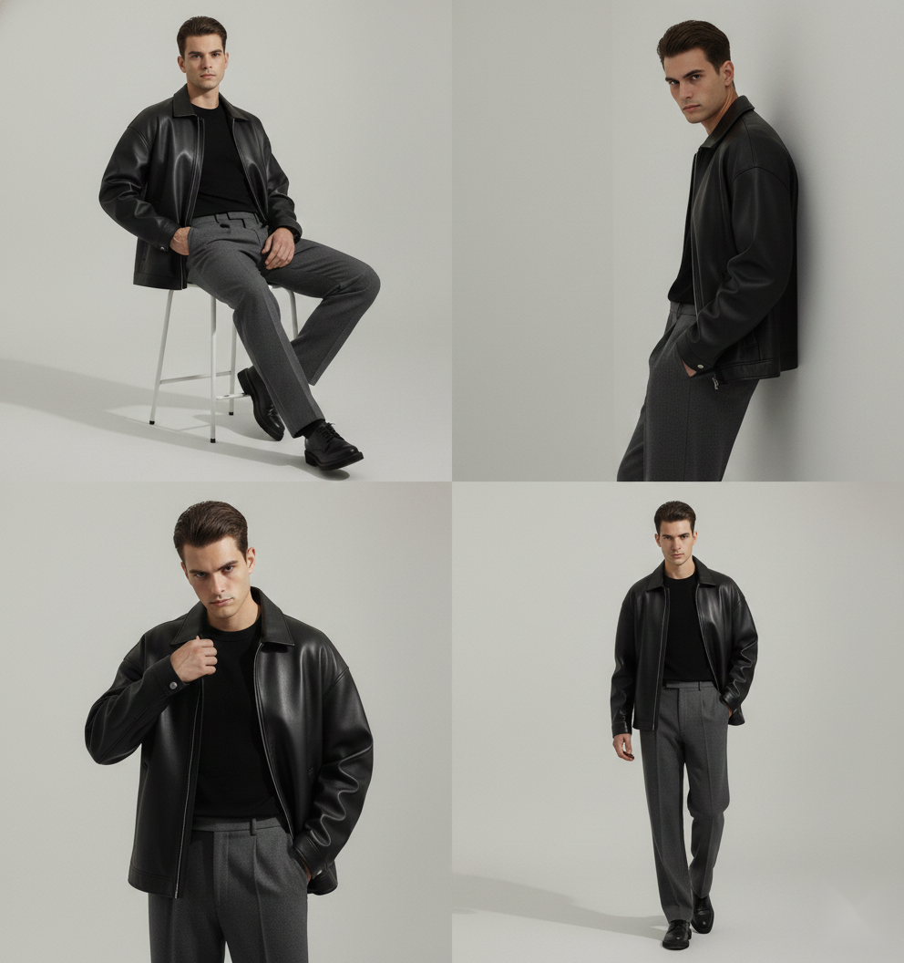 The Midnight Noir Spread Collar Faux Leather Jacket is clean, minimal and sharp – the kind of piece that instantly makes a basic tee and jeans look styled.