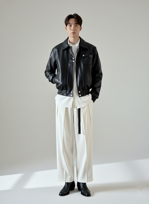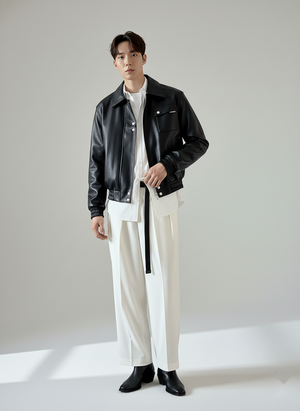 Men’s Seoul Classic Black Spread Collar Faux Leather Jacket