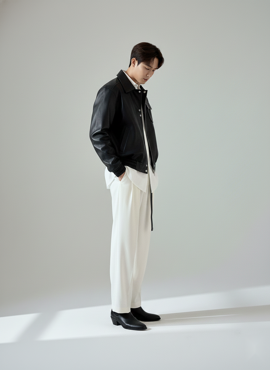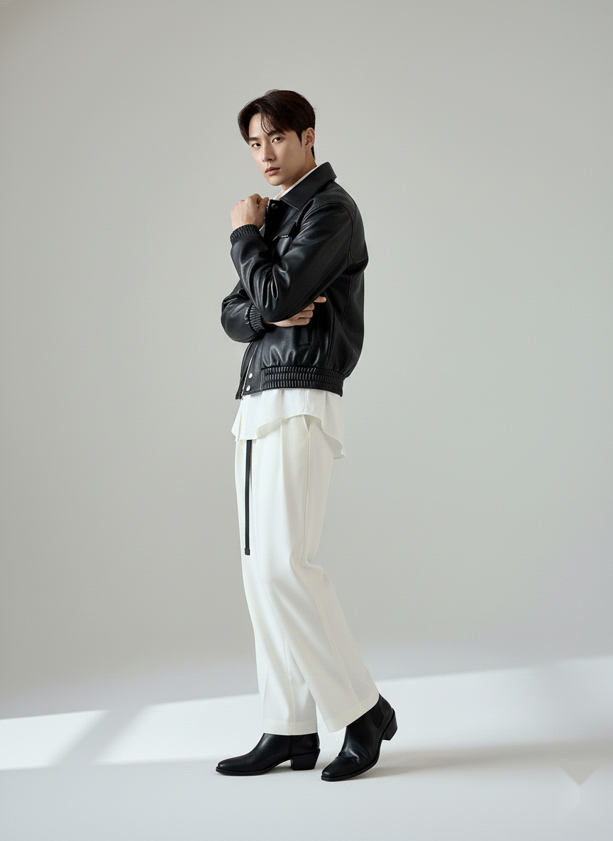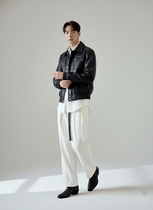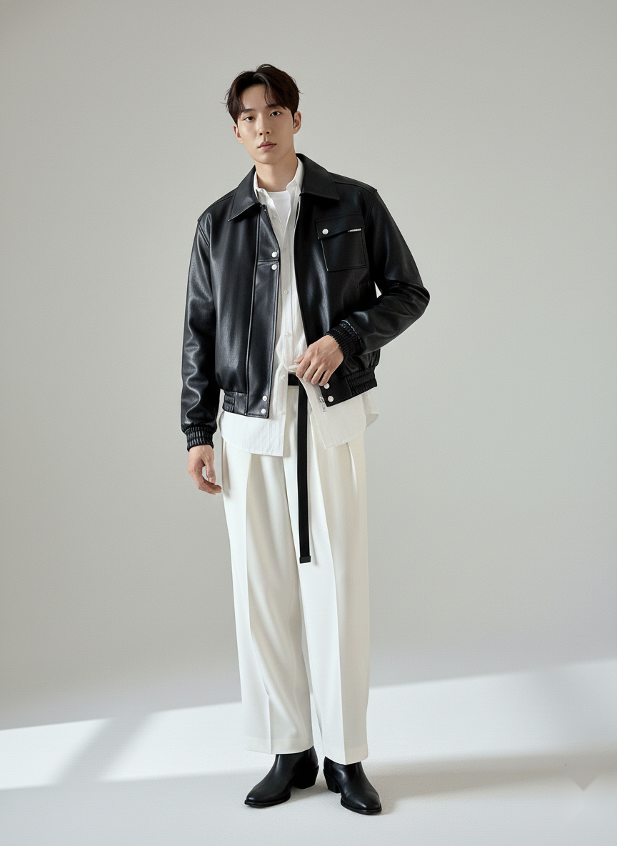 The Seoul Classic Black Spread Collar Faux Leather Jacket is a clean, minimal layer inspired by Korean street style – sharp on top, relaxed everywhere else.