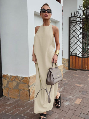 Effortlessly elegant, our Minimalist Halter Neck Maxi Dress in Khaki is the definition of modern sophistication. Designed with clean lines and a relaxed silhouette, this dress features a chic halter neckline that flatters the shoulders and elevates your day-to-night wardrobe.
