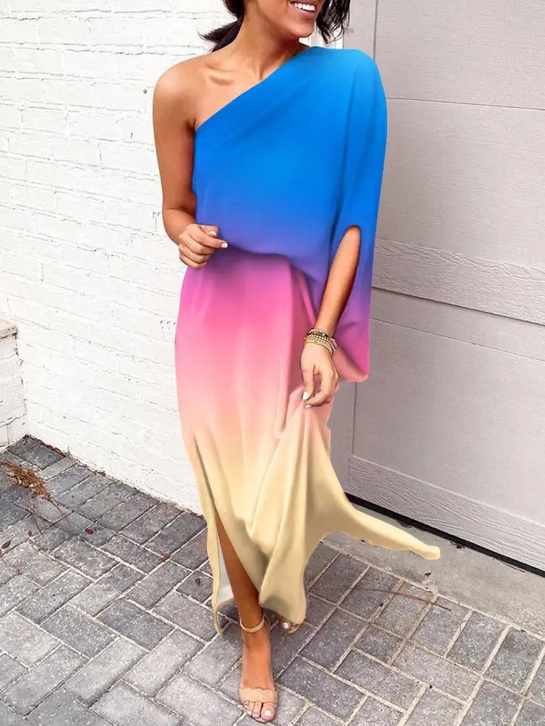 Multi One Shoulder Floral Sleeveless A-Line Polyester Maxi Dress
