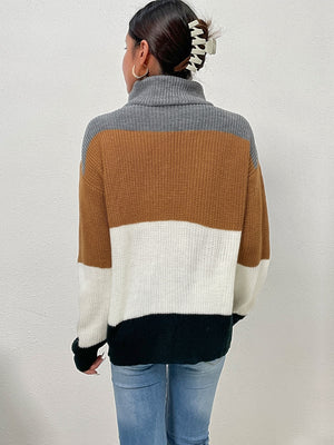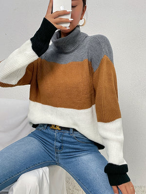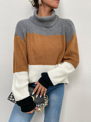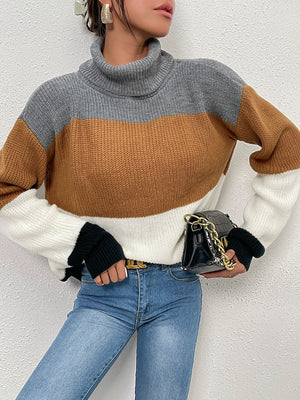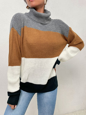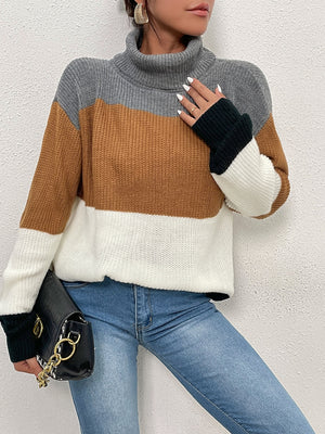 Multi Round Neck Colourblocked Long Sleeves Polyester Sweater