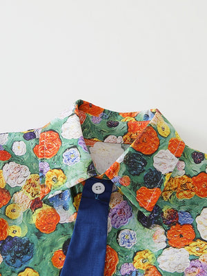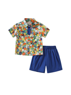 Multi Shirt Collar Short Sleeves Pure Cotton Top & Shorts Set