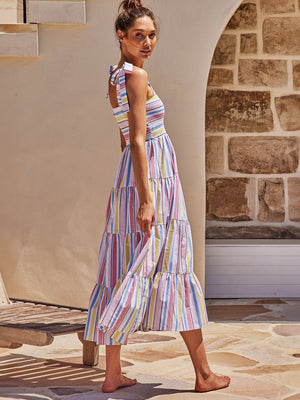 Multi Square Neck A-Line Floral Sleeveless Maxi Polyester Dress