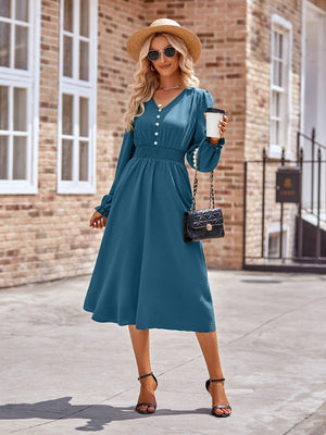 This elegant A-Line dress is made from high-quality navy blue polyester, perfect for any occasion. The flattering silhouette and versatile color make it a must-have in any wardrobe. The dress features a classic v-neck neckline and a comfortable fit that will make you feel confident and stylish.