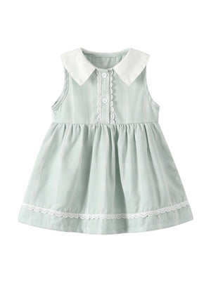 Navy Blue A-Line Round Neck Solid Short Sleeves Cotton Dress