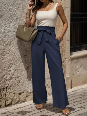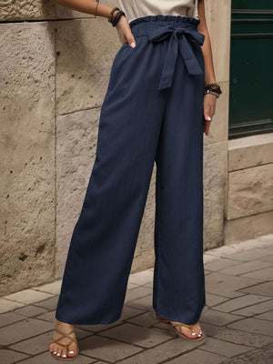 Navy Blue Loose Fit Solid Polyester Trouser