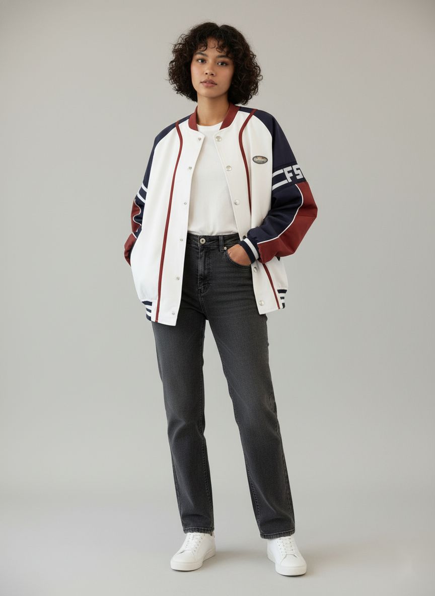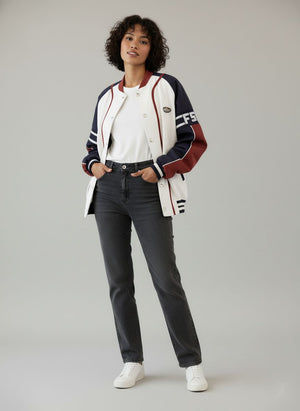 Navy Blue Collarless Long Sleeves Colourblocked Polyester Open Front Jacket