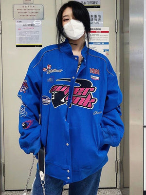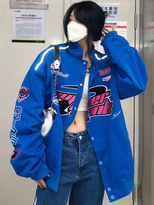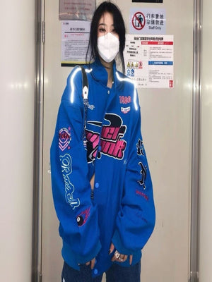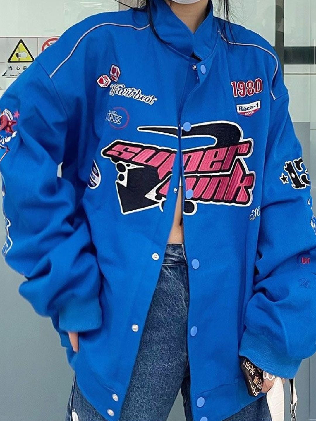 Navy Blue Collarless Long Sleeves Typography Polyester Open Front Jacket