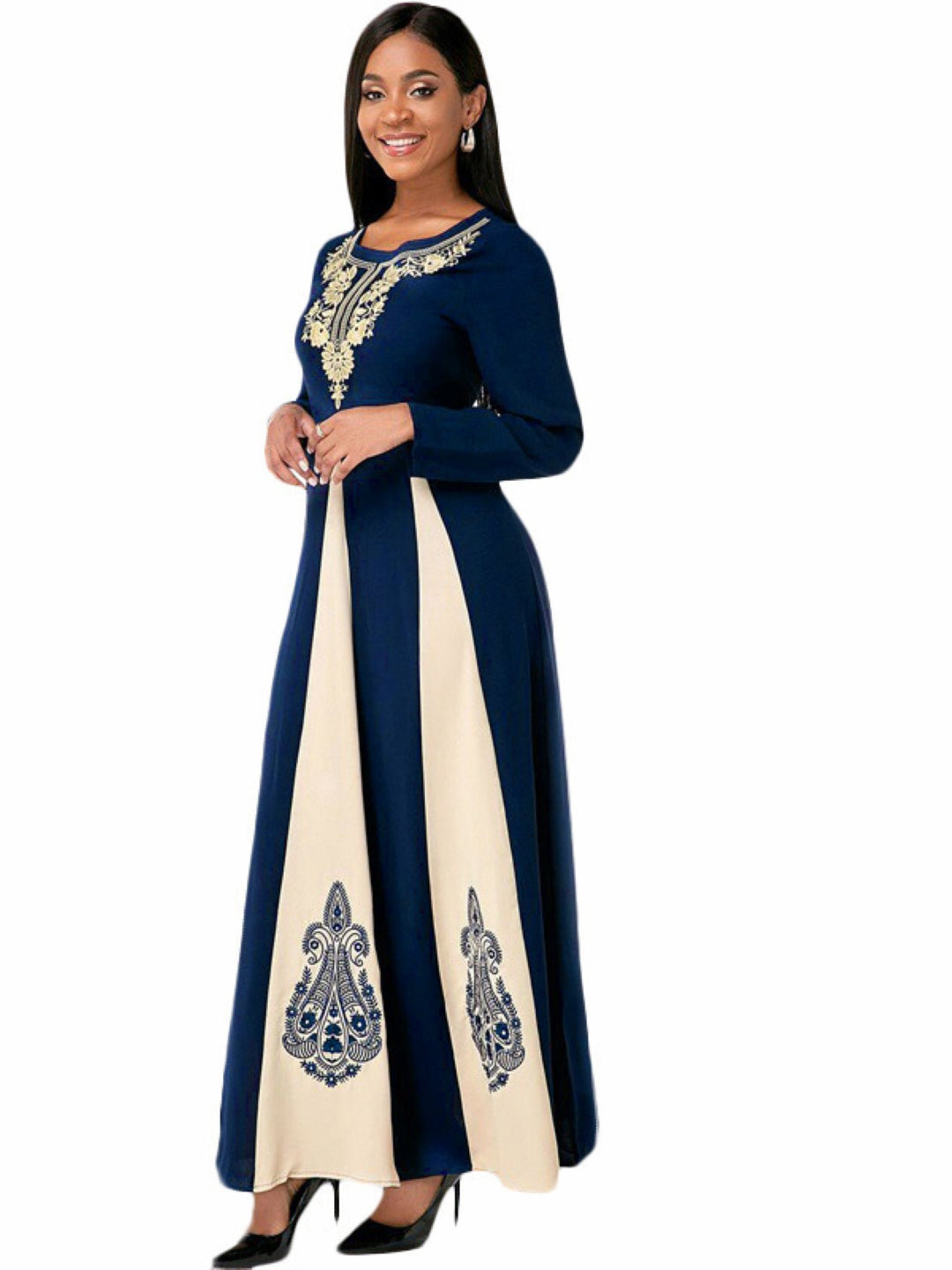 Crafted with attention to detail, this navy blue round neck colourblocked long sleeves a-line polyester maxi dress features a colourblocked navy blue color that exudes elegance and sophistication. Pair it with heels and statement accessories for a glamorous evening ensemble or dress it down with flats for a more casual yet stylish outfit.
