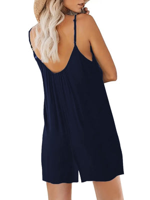 Navy Blue Shoulder Straps Sleeveless Solid Polyester Jumpsuit