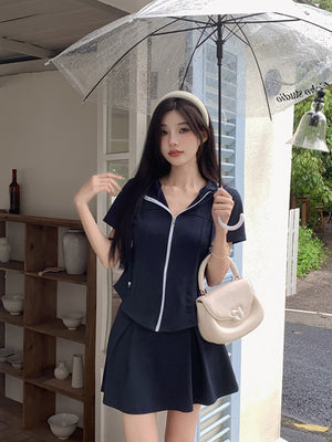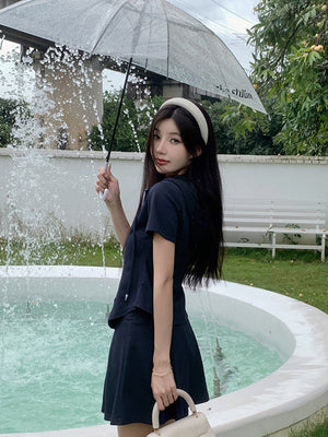 Navy Blue Solid A-Line Above Knee Slip-On Polyester Skirt