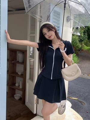 Introducing our Navy Blue Solid A-Line Above Knee Slip-On Polyester Skirt, a versatile addition to your wardrobe that effortlessly combines style and comfort.