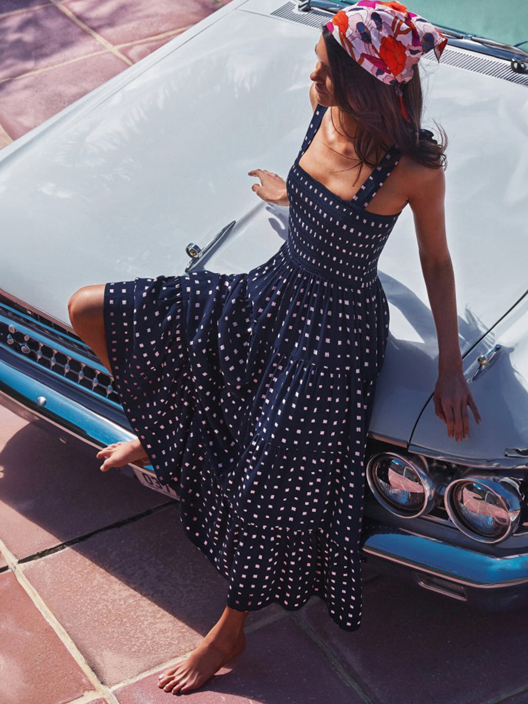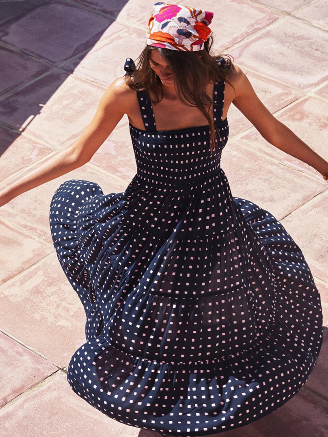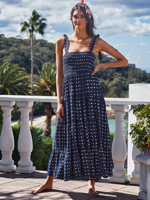 Embrace your feminine side and turn heads with our navy blue square neck a-line floral sleeveless maxi polyester dress. Crafted from high-quality polyester, this dress offers a comfortable and lightweight feel, perfect for any occasion.