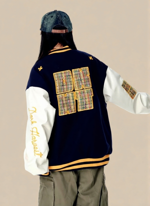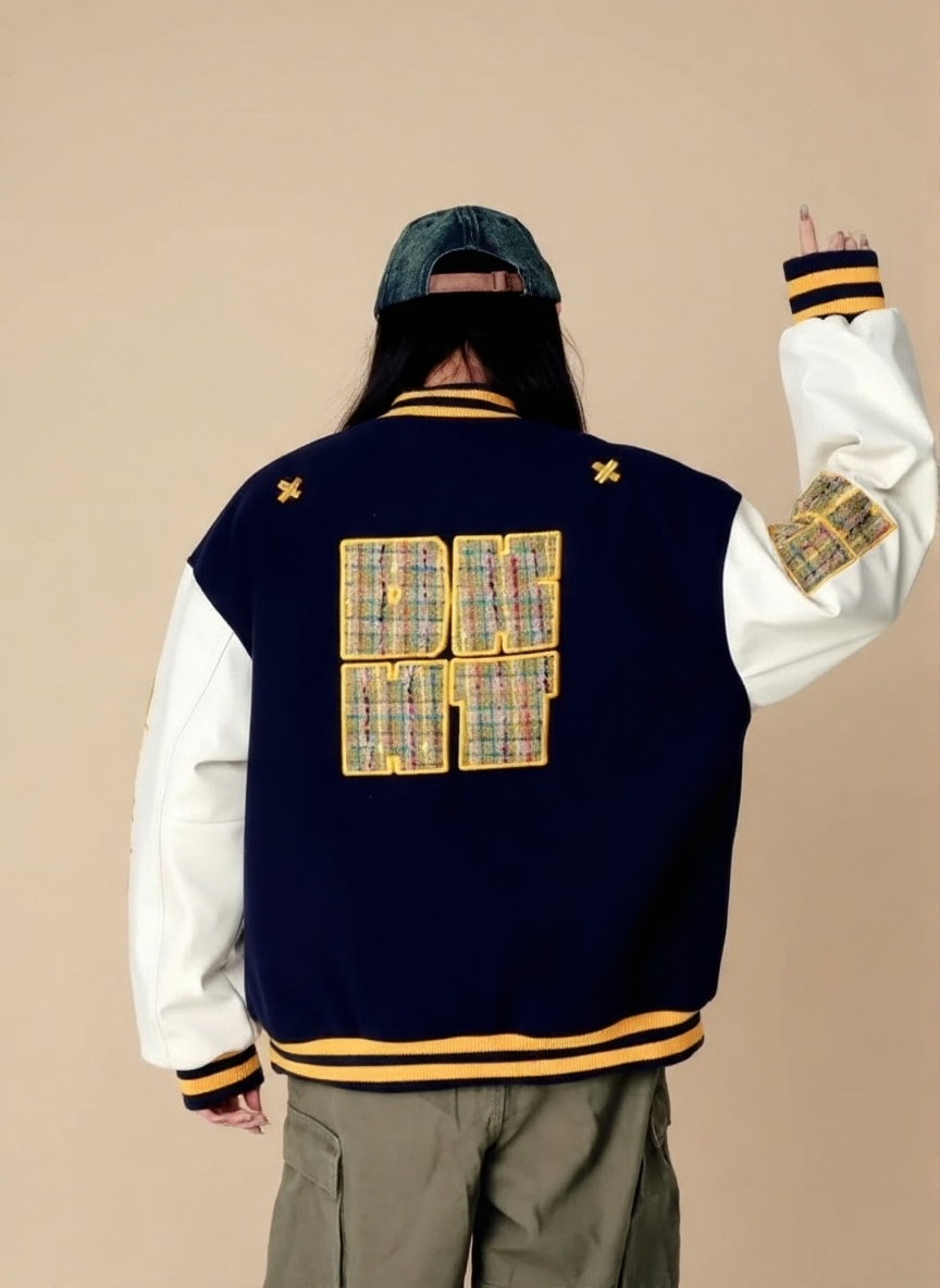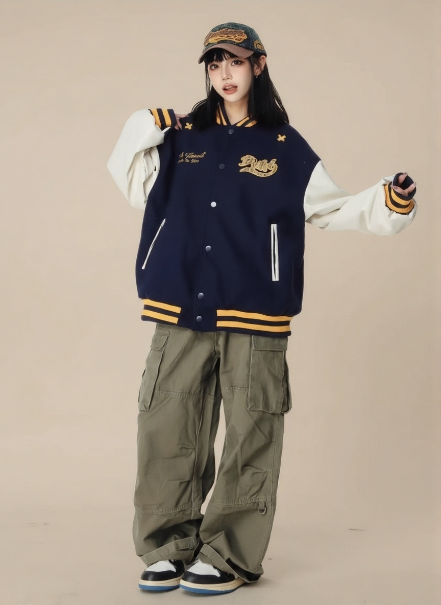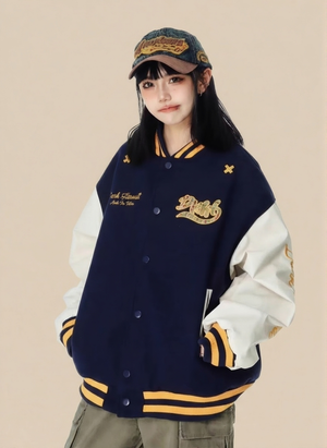 Navy Blue Stand Collar Long Sleeves Printed Polyester Open Front Jacket