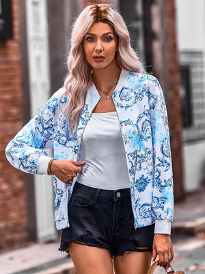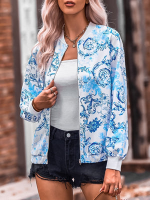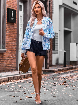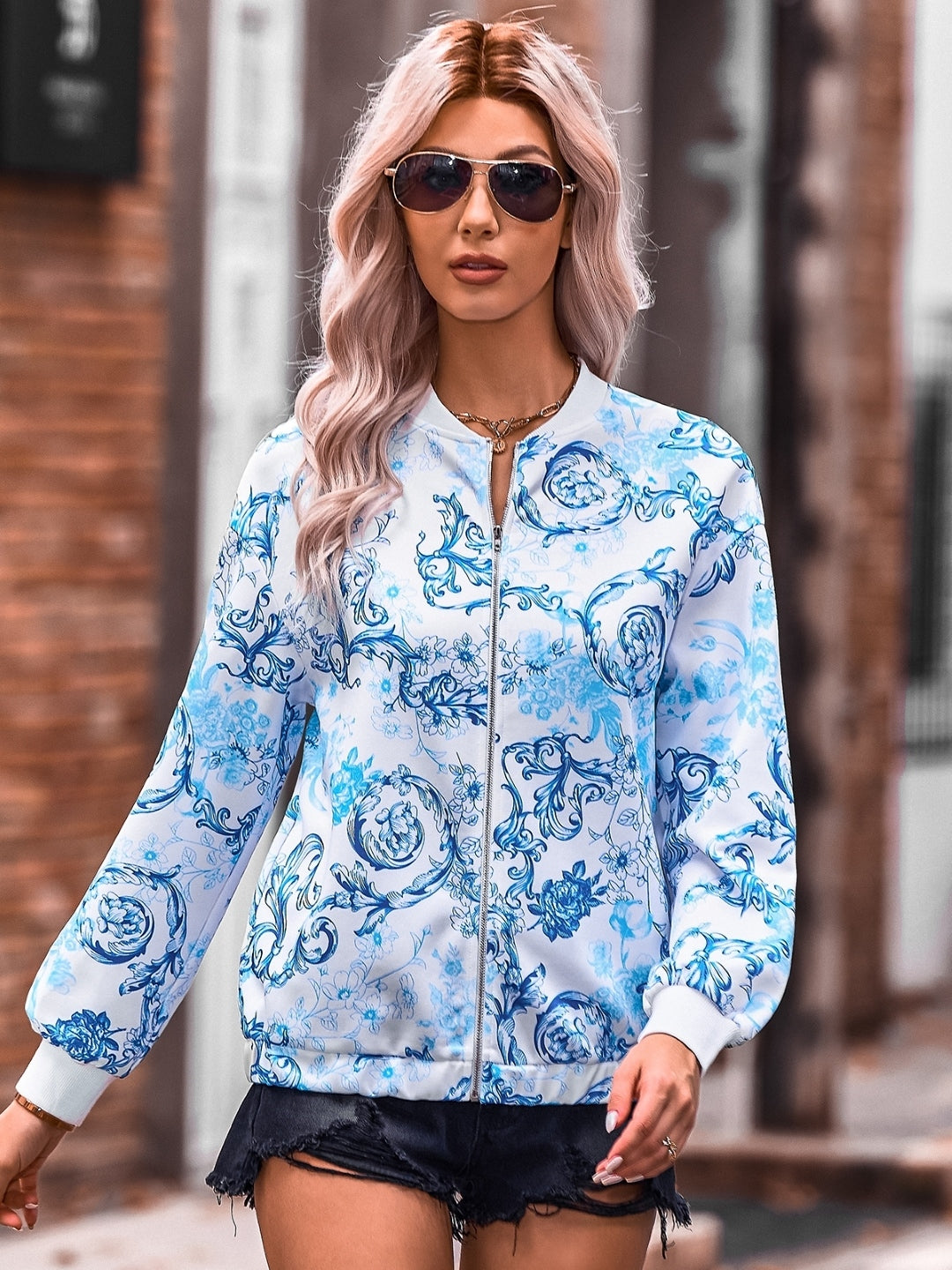 Navy Blue Three Quarter Sleeves Halter Neck Polyester Jacket