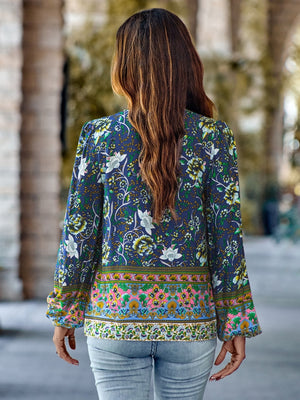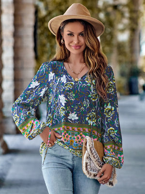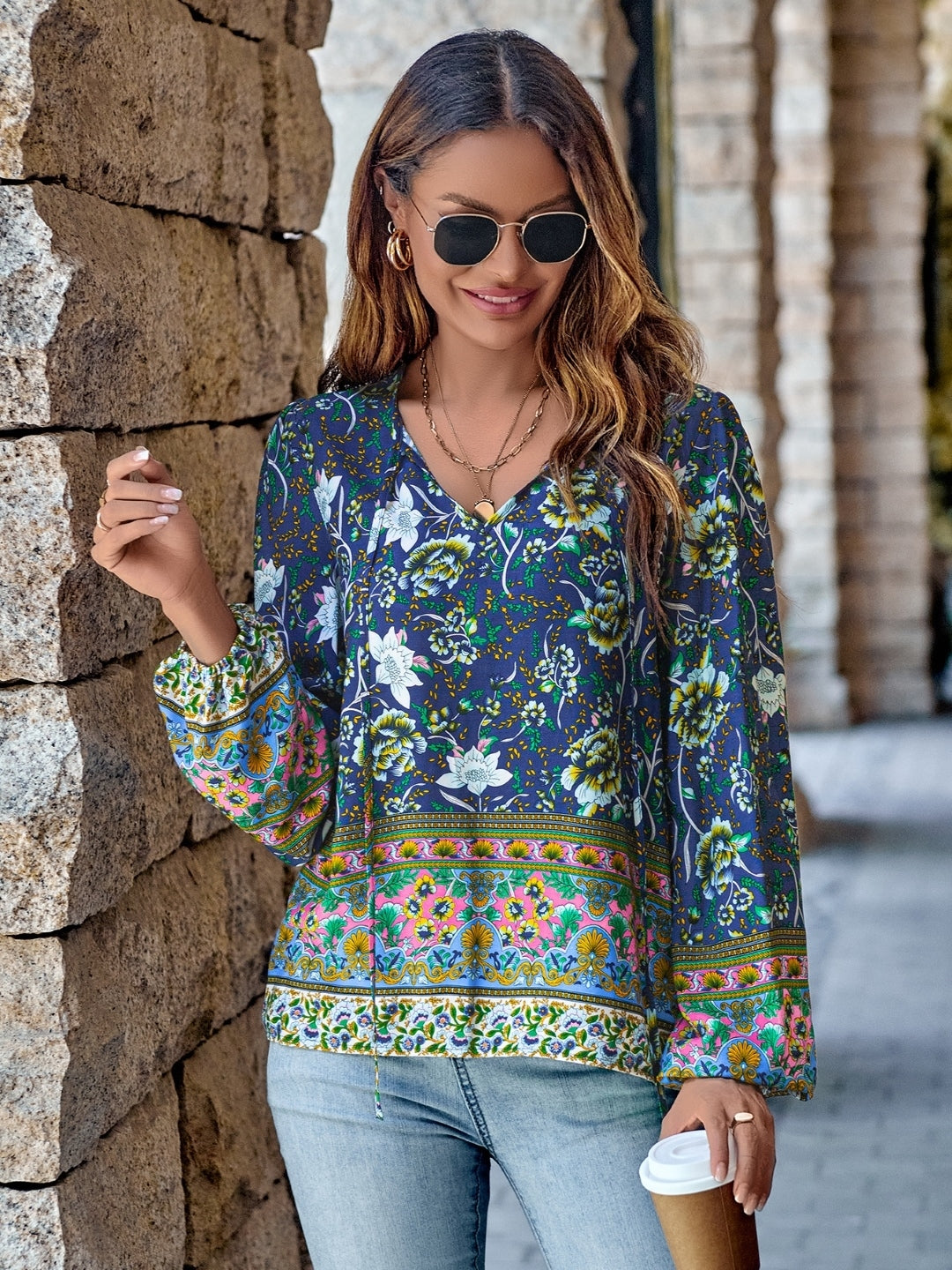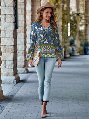 Navy Blue V-Neck Long Sleeve Viscose Rayon Top
