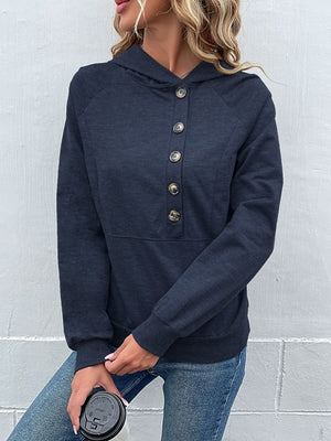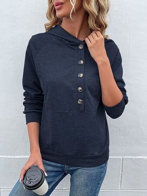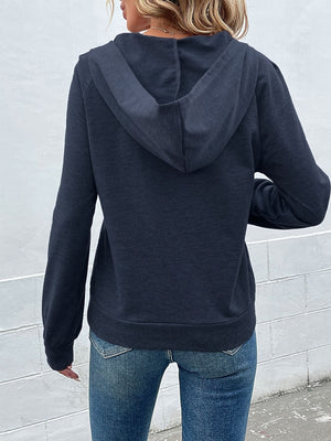 Navy Blue V-Neck Solid Long Sleeves Polyester Top