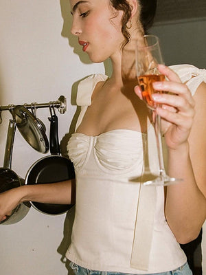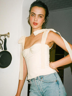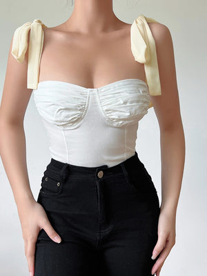 Off White Shoulder Straps Solid Sleeveless Cotton Crop Top
