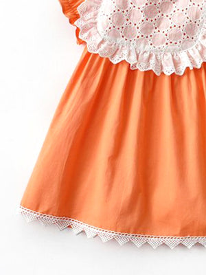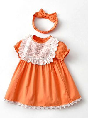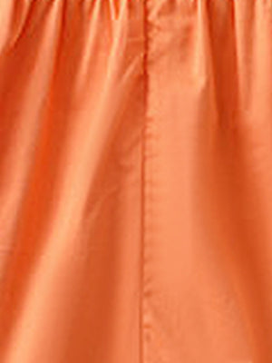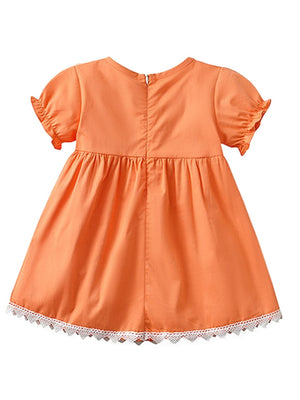 Orange Round Neck Casual A-Line Solid Short Sleeves Knee Length Cotton Dress