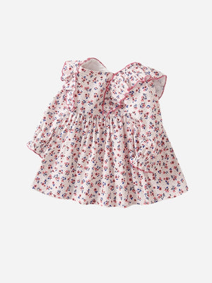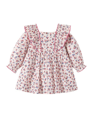 Pink A-Line Round Neck Floral Long Sleeves Cotton Dress