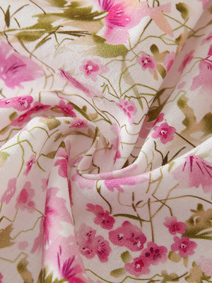 Pink A-Line Round Neck Floral Sleeveless Cotton Dress