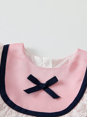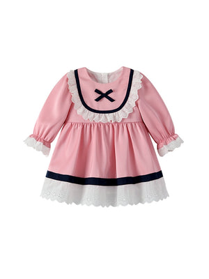 Pink A-Line Round Neck Solid Long Sleeves Polyester Dress