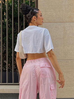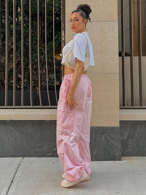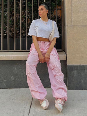 Add a pop of color to your wardrobe with these pink baggy trousers, designed for both comfort and fashion.
