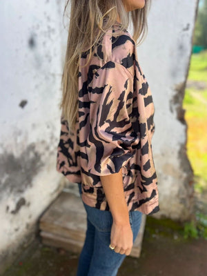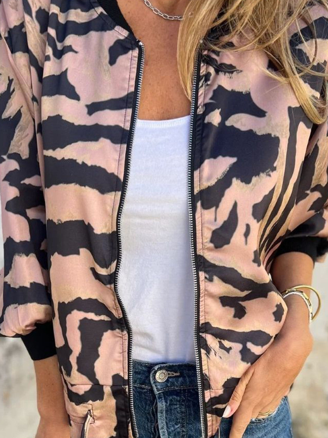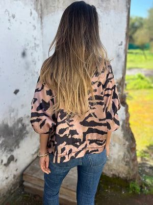 Pink Collarless Long Sleeves Printed Polyester NA
