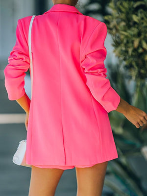 Pink Lapel Collar Three-Quarter Sleeves Solid Polyester Open Front Jacket