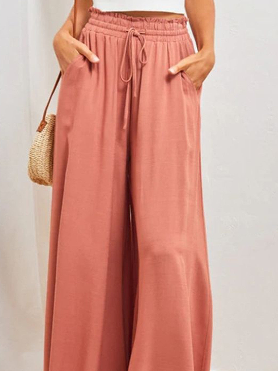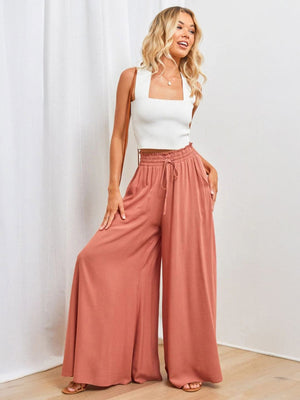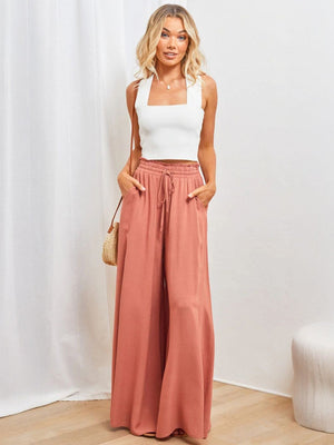 Pink Loose Fit Solid Polyester Trouser