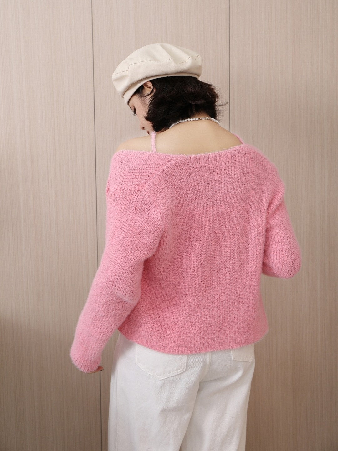 Pink Nylon Shoulder Straps Long Sleeves Solid Top