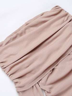 Pink Off Shoulder Solid Long Sleeves Maxi Bodycon Polyester Dress