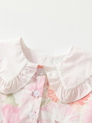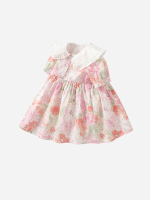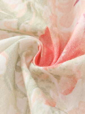 Pink Round Neck Casual A-Line Floral Short Sleeves Knee Length Cotton Dress