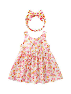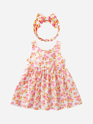 Pink Round Neck Casual A-Line Floral Sleeveless Knee Length Cotton Dress
